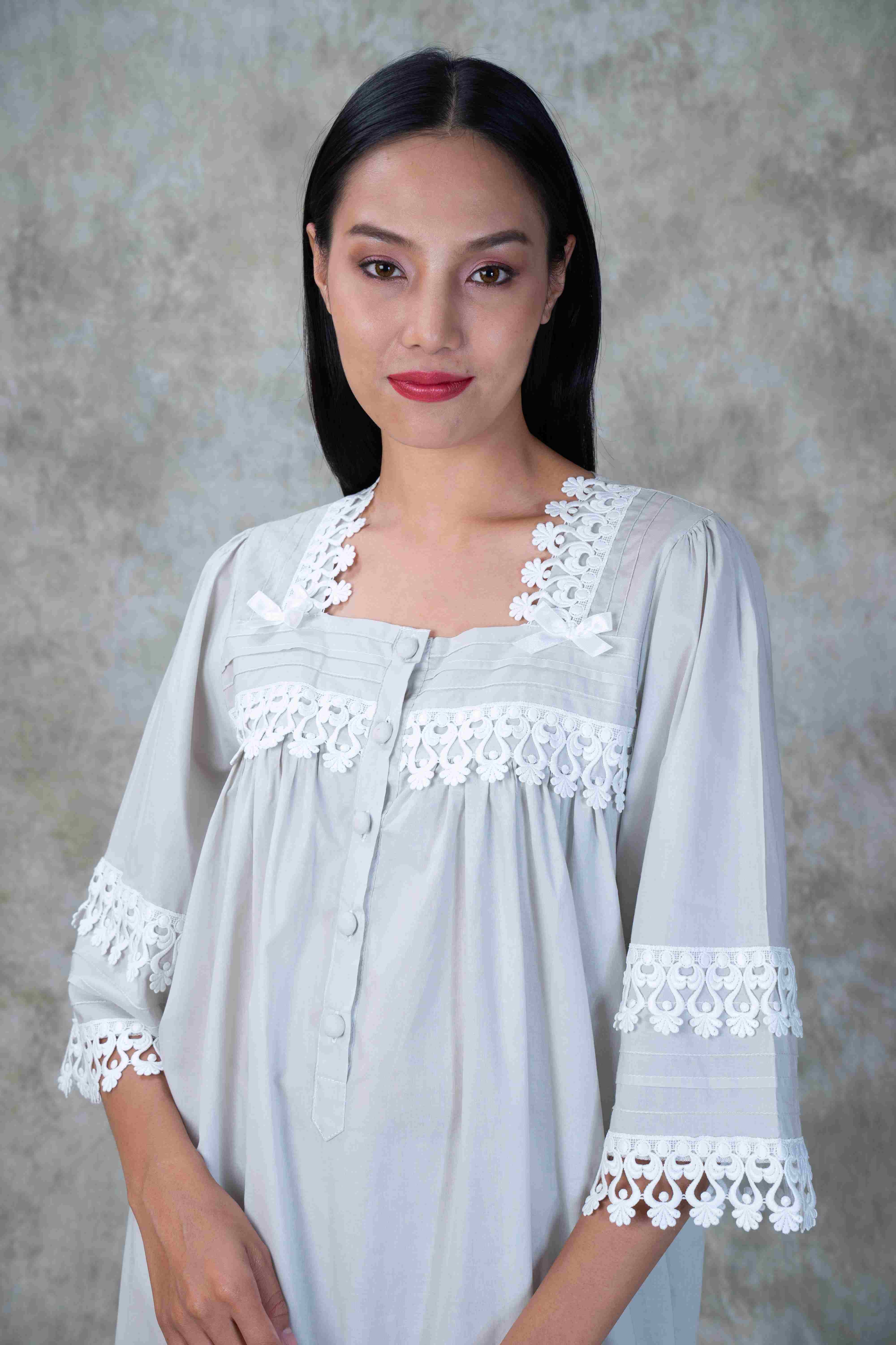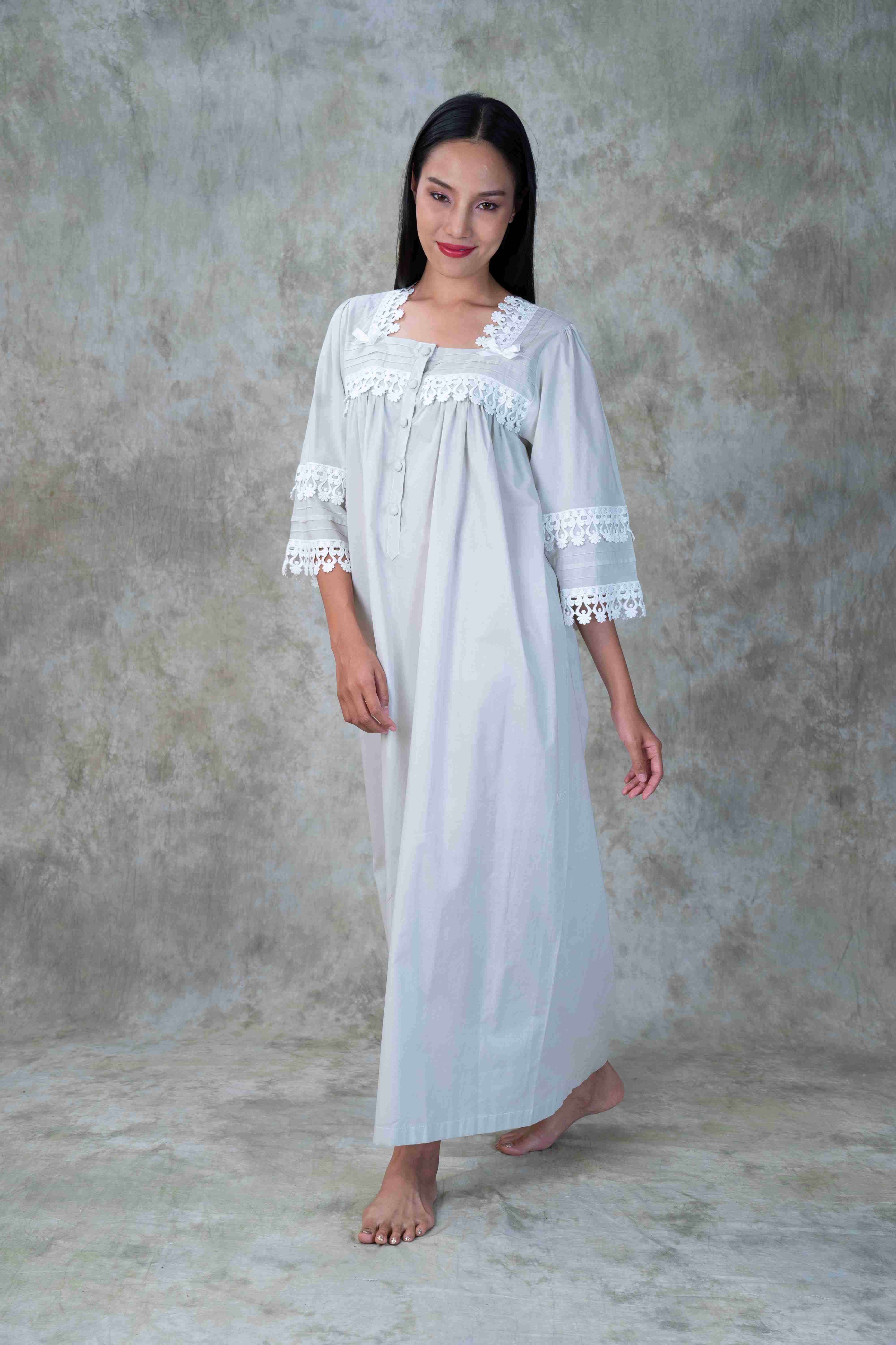 • 100% Cotton Long Sleeve Night wear and House wear hand pleated with special lace