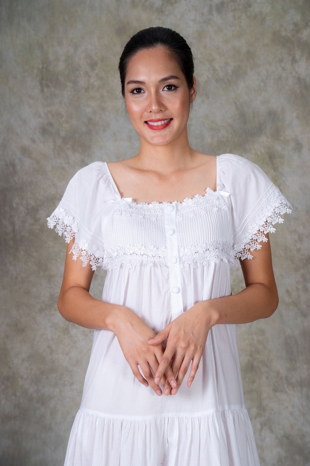 • 100% Cotton decorative with hand pleated, lace and hand made buttons