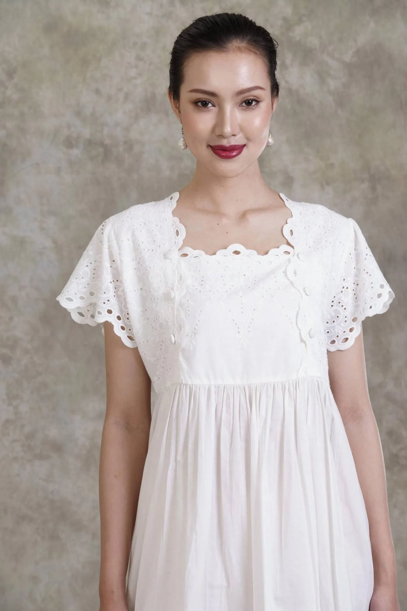 • 100% Cotton decorative with Embroidery collar, hand pleated and hand made buttons