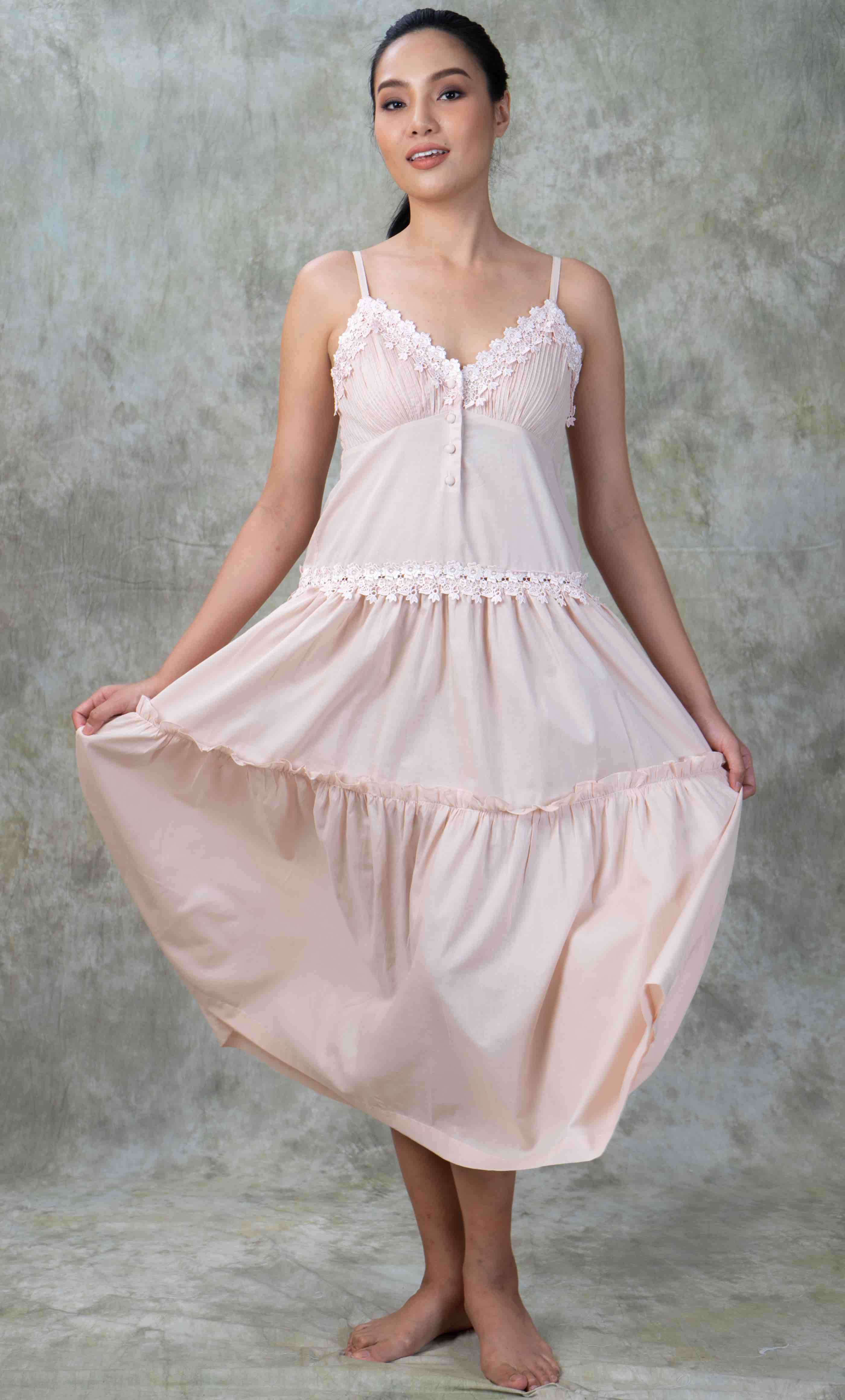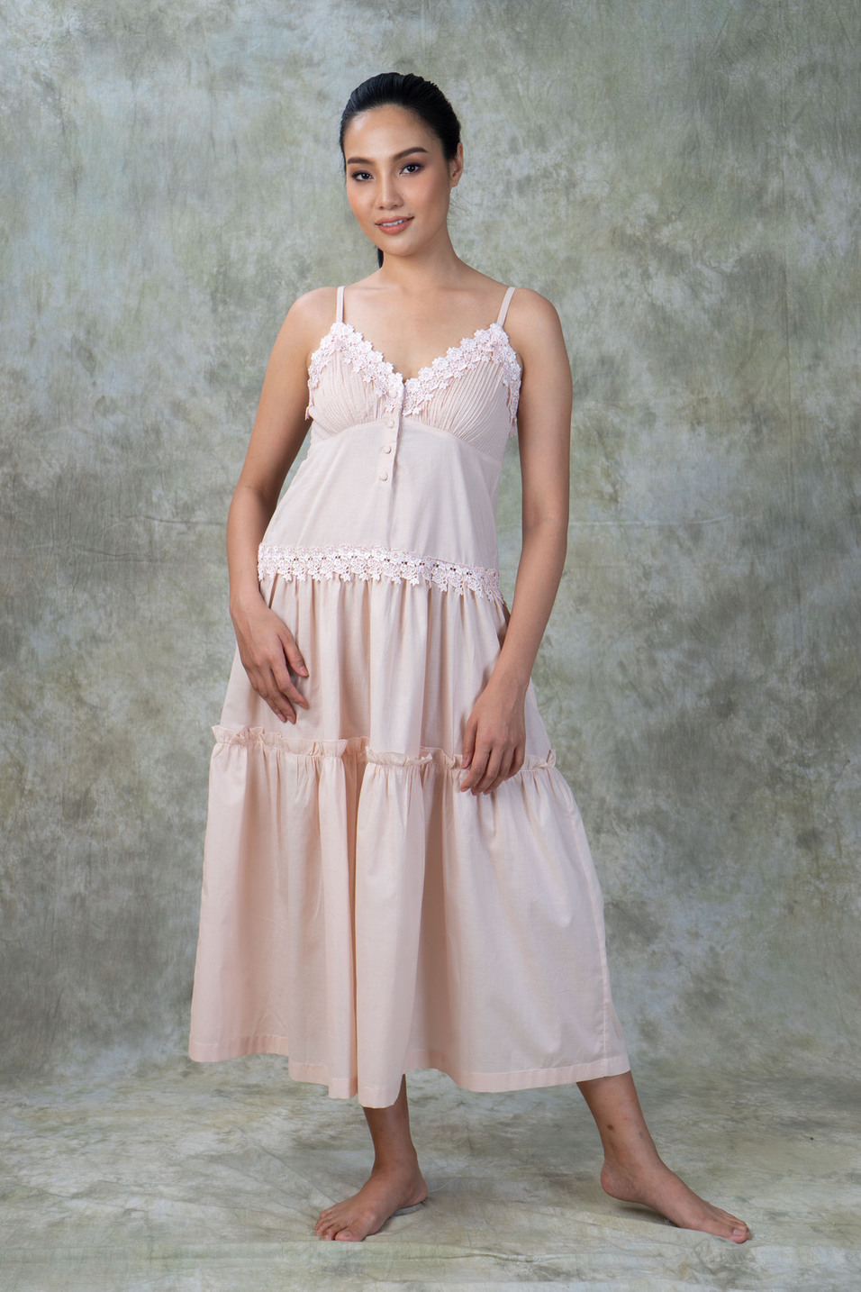 • 100% Cotton Long Camisole Nightdress hand pleated with special lace